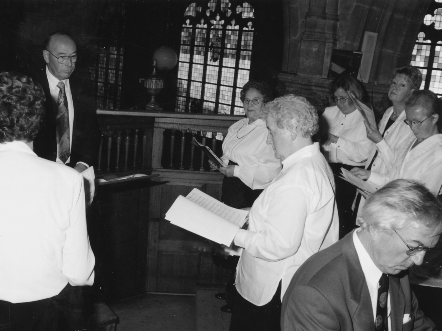 Johan Vernimmen en Jo Ivens met het Dameskoor boven op het oksaal in 1995.